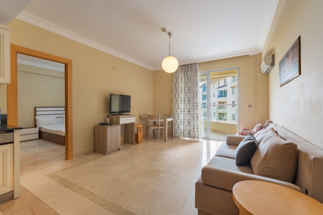 In Gold City, this nice one bedroom apartment is offered, located in the middle of one of Alanya’s